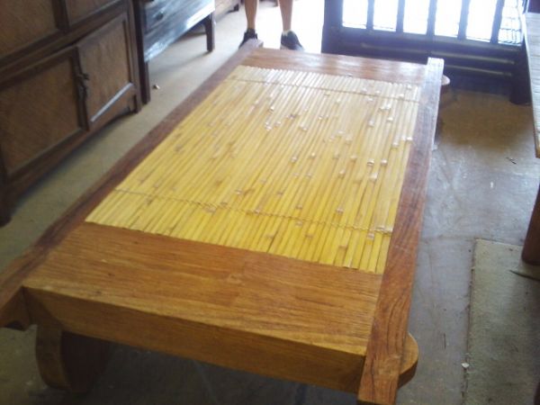 71''L x 34''W x 18''H Teak Bench/Table w/Bamboo Slat Insert.