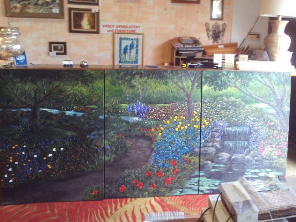 Oversized Heavily Textured Tryptic - 3 Panels @ 36''W x 48''H - Total 108''W x 48''H x 2.5''D - Aurora King Original.