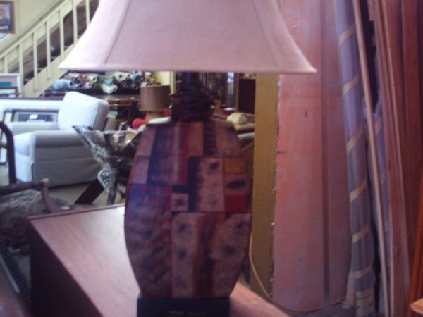 SET OF TWO - Modern Lamps (Red/Beige/Black) 31.5''H w/Suede Shades.