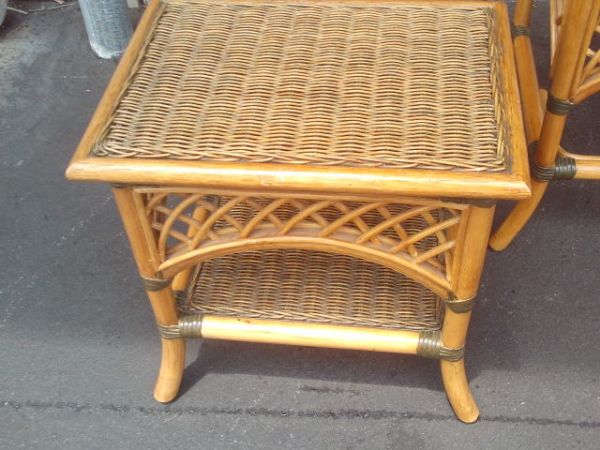 Small Rattan Table (Matches #4839) - 18'' x 13'' x 18''H.