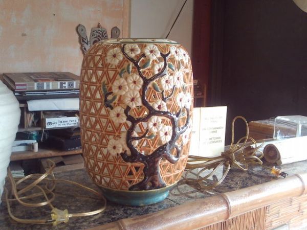 8''diameter x 12''H Pierced Ceramic Lamp w/Cherry Blossom.