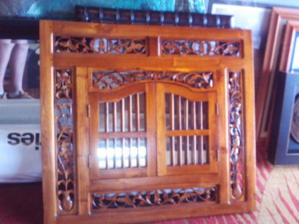 31.5'' x 35.5'' Carved Indonesian Mirror Behind Doors.