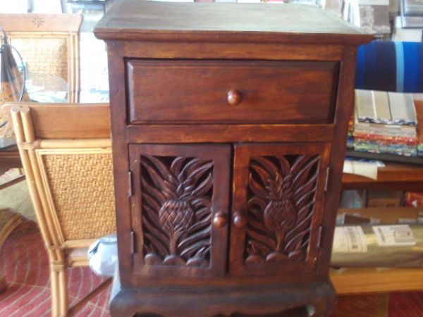 SET OF TWO - End Table/Nightstand w/Drawer and Perforated Carved Doors - Pineapples - 19.5''W x 16.5''D x 25.5''H.