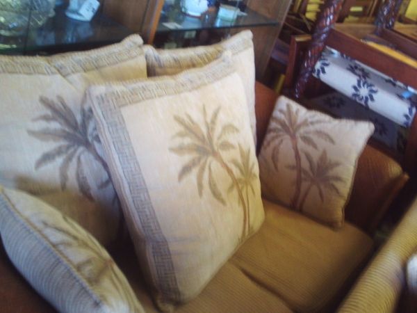 Woven Arm Loveseat - 66''L x 36''D w/Palm Pillows.