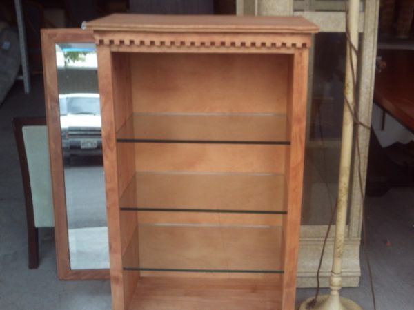 Rustic Wood Shelving Unit with Glass Shelves - 24''W x 14.5''D x 40.5''H.