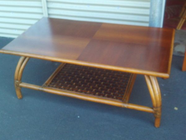 44'' x 24'' x 17'' Medium Colored Rattan Coffee Table w/Woven Bottom Shelf.