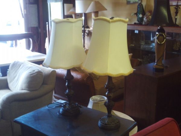 SET OF TWO - 30''H Metal Lamps w/Stone Insert and Shades.