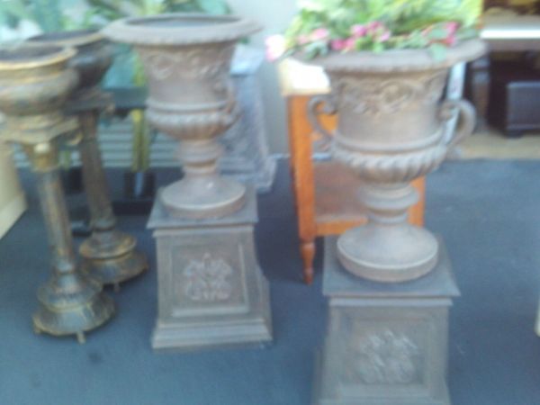 SET OF TWO 49''H Large Resin Planters on Pedestals.
