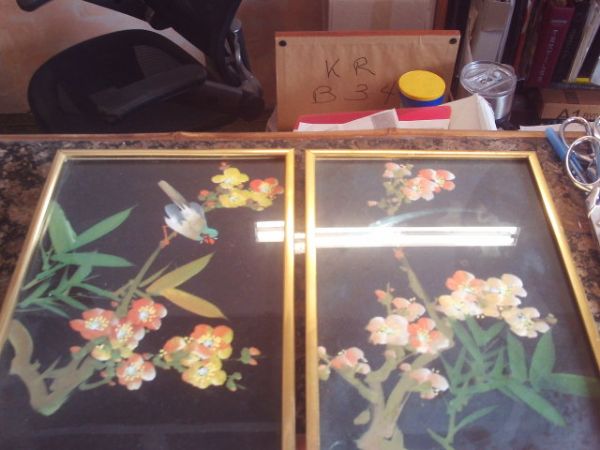 8'' x 12''H Asian Bird and Floral Painting on Silk.