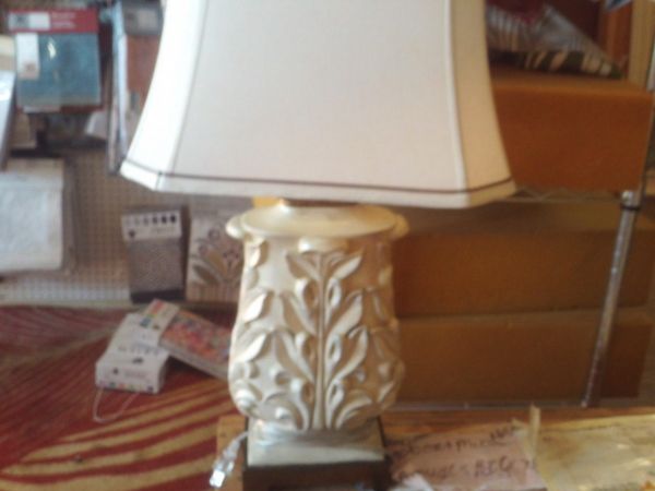 26''H White Base Lamp - Transitional - Nice Shade & Finial.