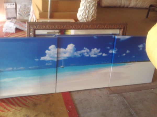 Tryptic - Each 2' x 2' Square = 6'L x 2'H - White Sand Beach Scene w/Sailboats.