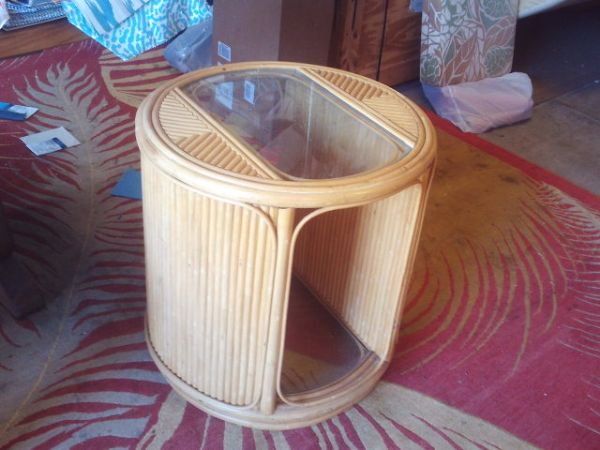23''diameter x 24''H Split Bamboo Occasional Table w/Glass Shelves.