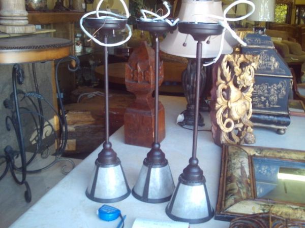 SET OF THREE - 34'' Drop Pendants - Bronze w/White Shade Inserts.