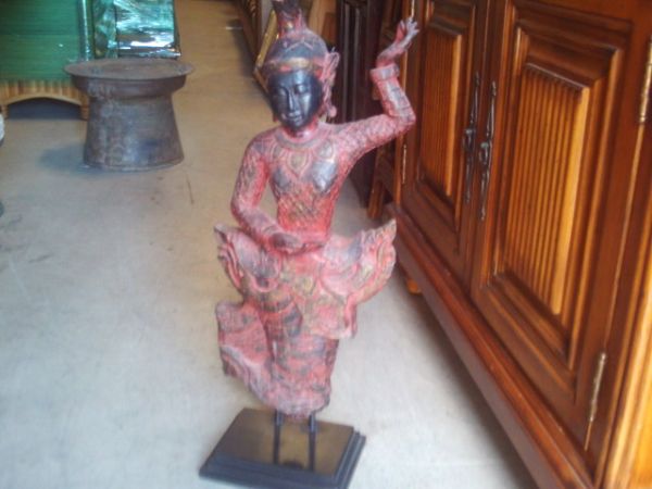 Thailand - Carved Wood Dancer - 12''W x 34''H.