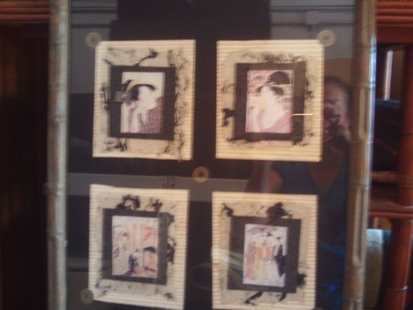 Pictures of Japanese Women in Burnished Bamboo Frame w/Coins.