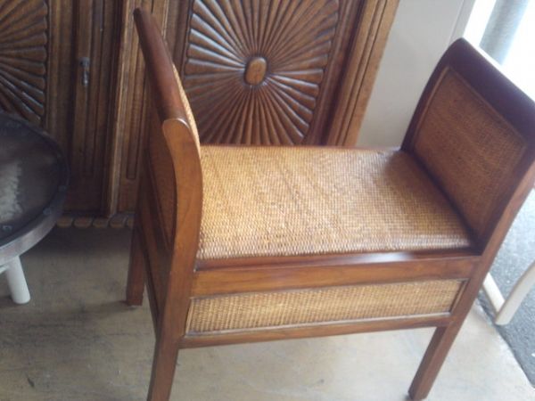 28'' x 15'' x 29.5''H Wood and Woven Rattan Bench w/Arms.