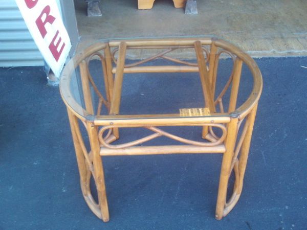Rattan End Table w/Glass Top - 27'' x 19.5'' x 22''H.