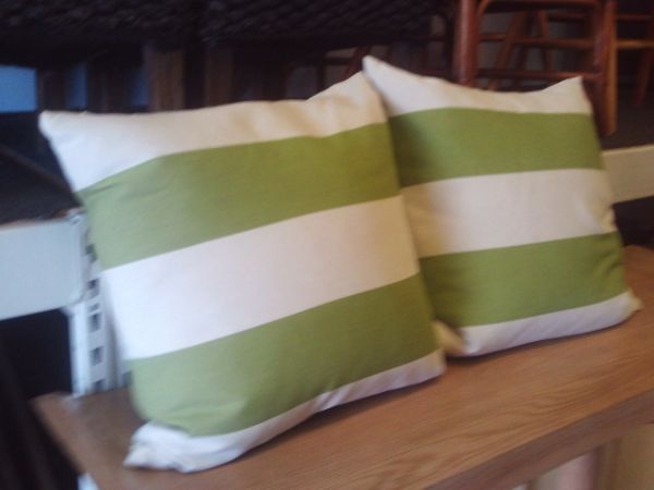 SET OF TWO - Down Filled Chartreuse Awning Stripe Pillows.