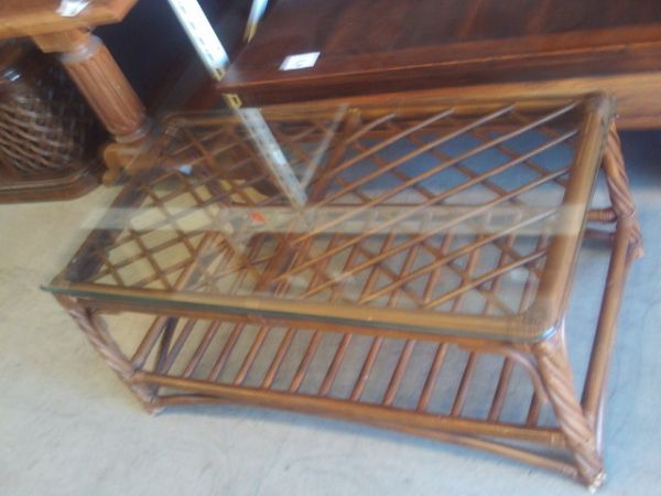 Rattan Coffee Table w/Glass Top - 44'' x 23'' x 19''H.