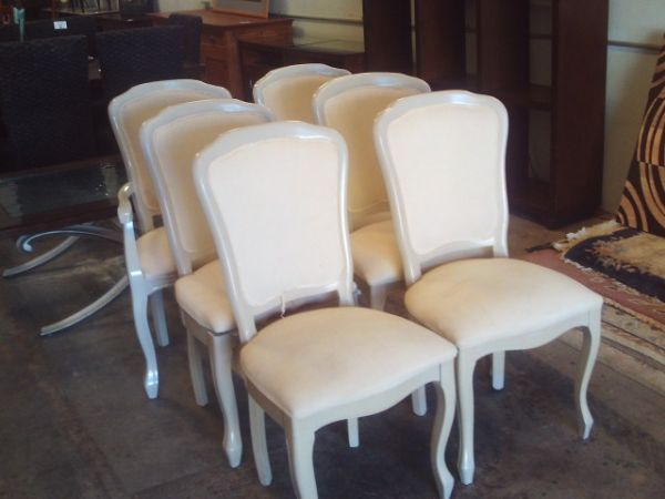 SET OF 4-- White Lacquer Chairs - 2 Arm Chairs, 3 Side Chairs - 1 Side Chair need TLC.