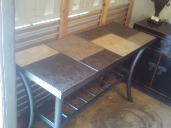 Metal Entry Table w/Grey Tile Top - 48''L x 18.5''D x 30''H.