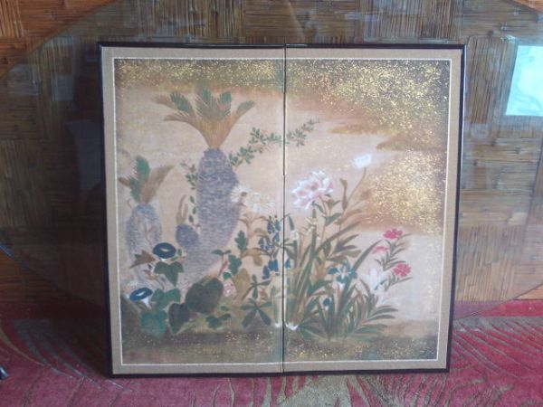 39.5''W x 37.5''H - Asian Two Panel Screen Painting on Silk.