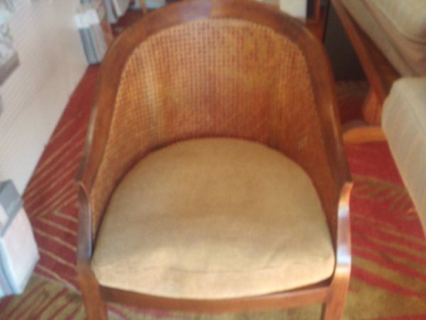 Wood Occasional Chair w/Cane Insets - Cushion & Wheels.