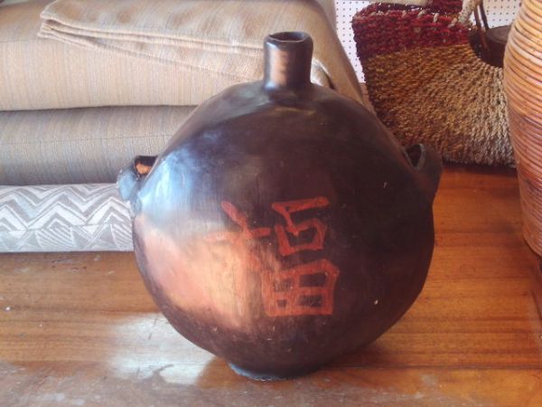 Large Paper Mache' ''Saki Bottle'' - Black - 13''H.