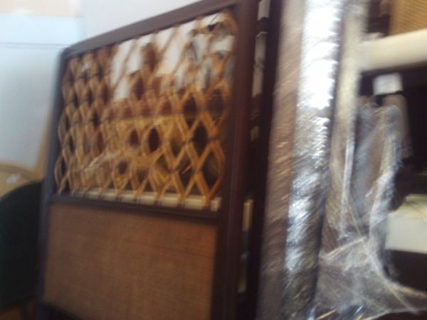 Queen Size Rattan and Black Canopy Headboard, Footboard and Rails.