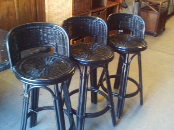 SET OF THREE -- Black Wicker Swivel Barstools - Need TLC - 29''H at Seat.