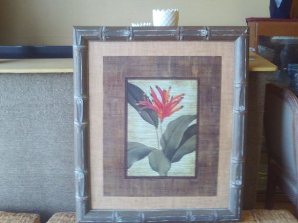 Bird of Paradise in Bamboo Frame 24'' x 27''H.