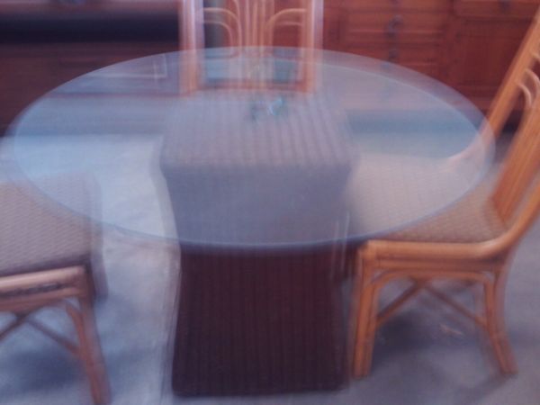 Palecek Wicker Table Base w/Glass Top - 47''diameter x 29''H.