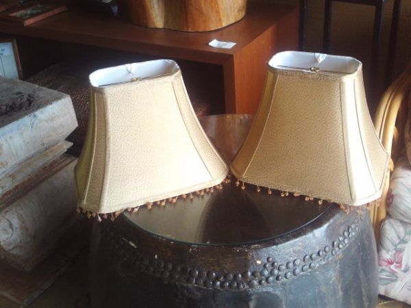 SET OF TWO - 10'' Gold Lamp Shades with Bead Trim.
