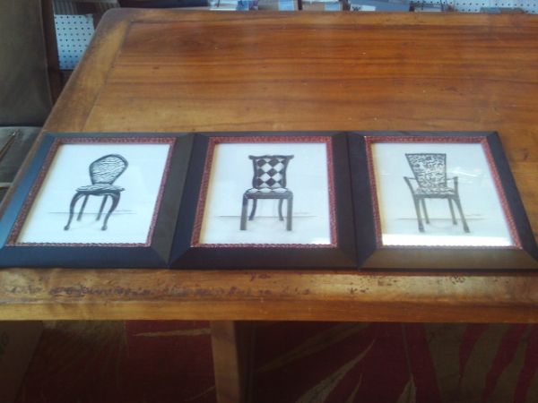 SET OF THREE - Black & White Chair Pictures - 11'' x 13''H.