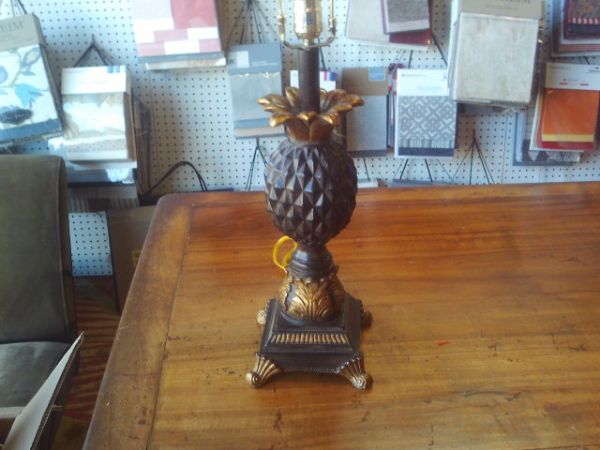31''H Gold/Black Pineapple Lamp - No Shade.