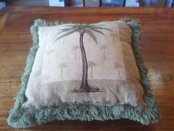 18'' x 18'' Green/Beige Pillow with Palm Tree.