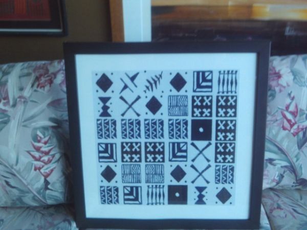 22'' x 22'' NEW! White/Black Symbols Pattern Framed Artwork.