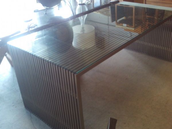 Modern Industrial Style Desk - Stainless Steel w/Glass Top - 73'' x 34'' x 29.5''H.