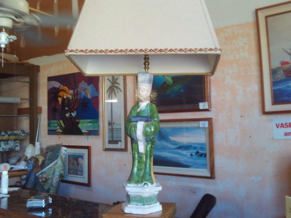 Asian Man Holding Book Lamp Base w/Shade - 34''H.
