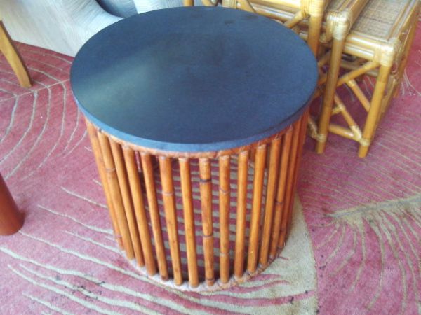 19.5''diameter x 19''H Bamboo End Table w/Black Stone Top.