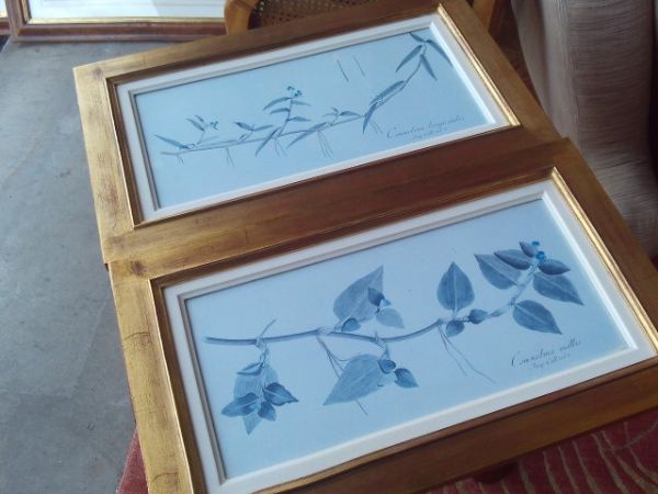 SET OF TWO - Botanical Prints w/Gold Frame.