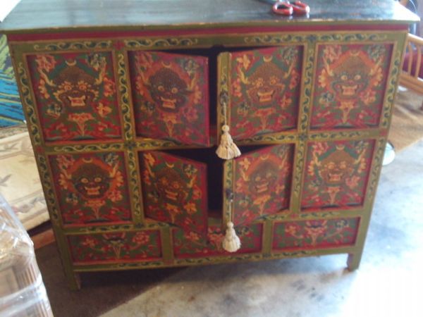 Colorful Painted Asian Cabinet w/Dragons and Flowers - 45'' x 16'' x 40''H.
