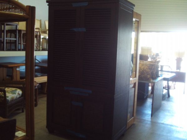 Wood Armoire w/Round Slat Top Cabinet, Woven Coconut Base Cabinet - 46'' w 25'' x 83''H.