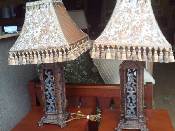 SET OF TWO - Monkey Lamps - 31''H - Paisley Beaded Shades.