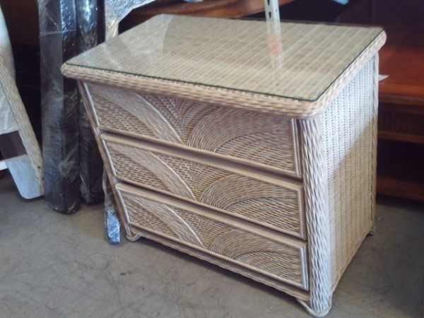 3 Drawer Whitewash Dresser w/Glass Top - 36'' x 21'' x 31''H.