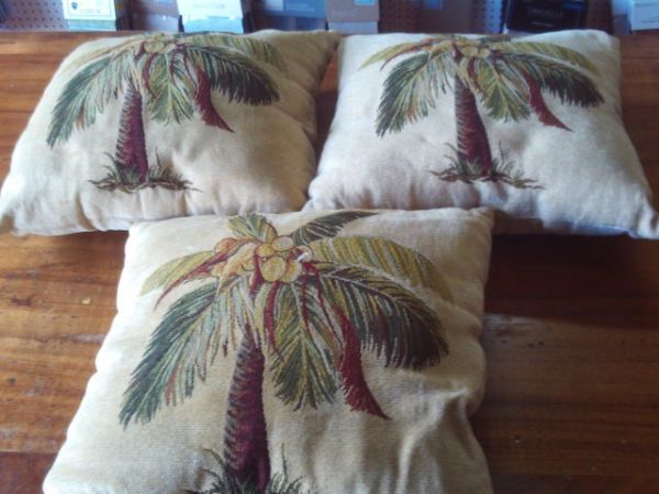 SET OF THREE - 16'' x 16'' Palm Tree Embroidered Pillows.