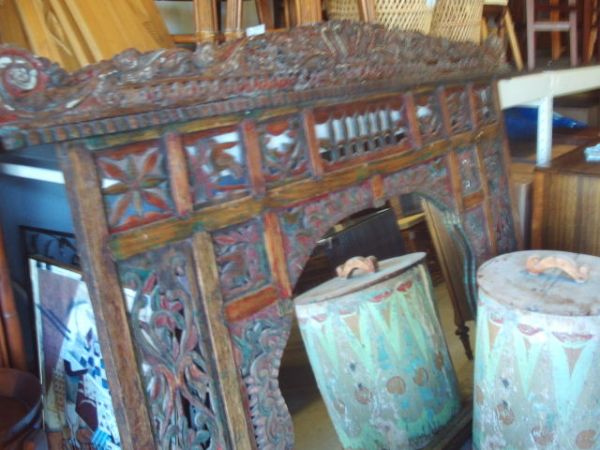 89''L x 59''H Ornately Carved Mirror (Bali?).