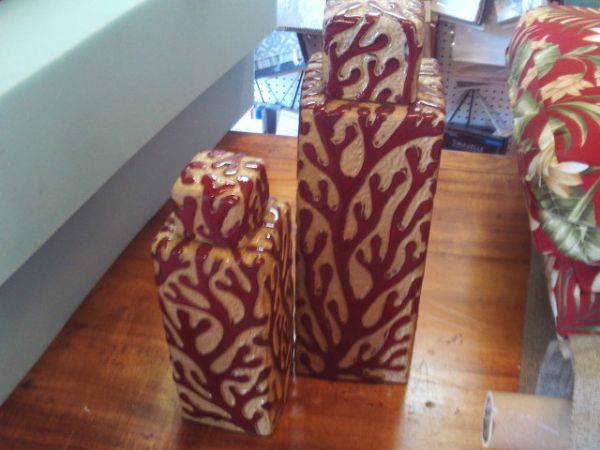 SET OF TWO -- Vases w/Lids ''Coral'' Design.