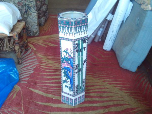 9'' x 33''H Octagonal Asian Decorated Porcelain Vase.