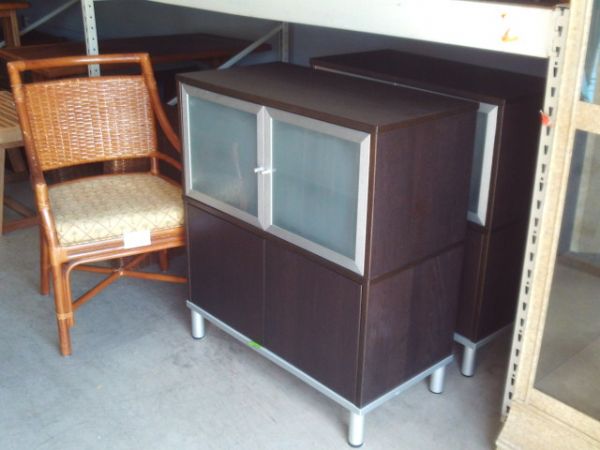 33'' x 17'' x 37''H Modern Cabinet w/Metal Framed Glass Doors, Glass Shelf, Bottom Cabinet.